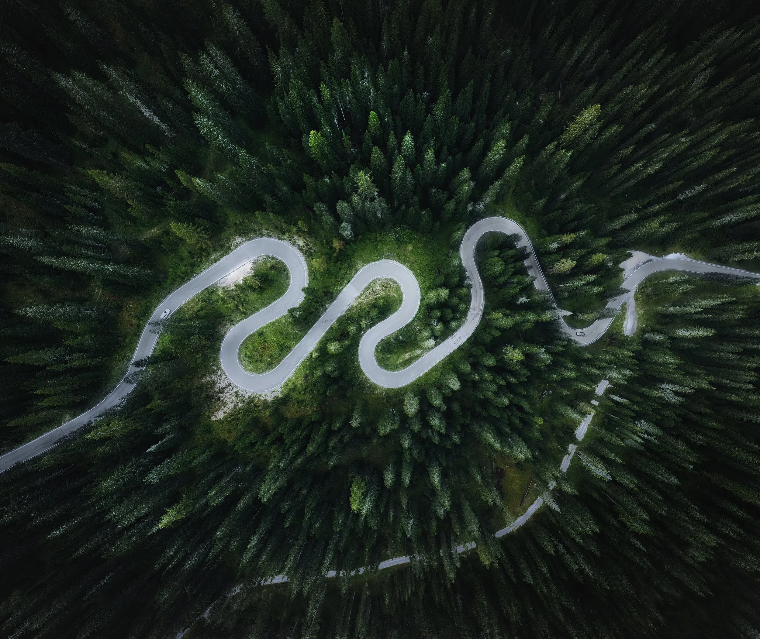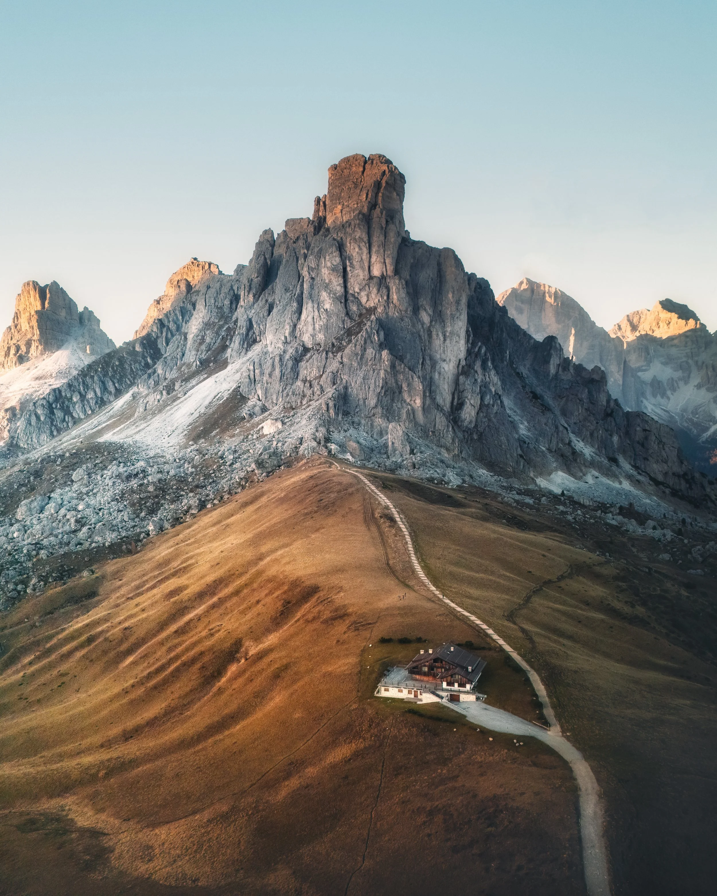 A classic, and a pass VERY popular with motorbikes and super cars on road trips. Not least because of the view, but the many hairpins that wind up and down each side of the pass. It’s actually those hairpins which make up one of the more popular shots. Obviously it requires a drone, looking straight down, and you can achieve a wider view by taking a panorama. The hairpins can be found half way between the hotel at the top and the start coming from the Cortina side.